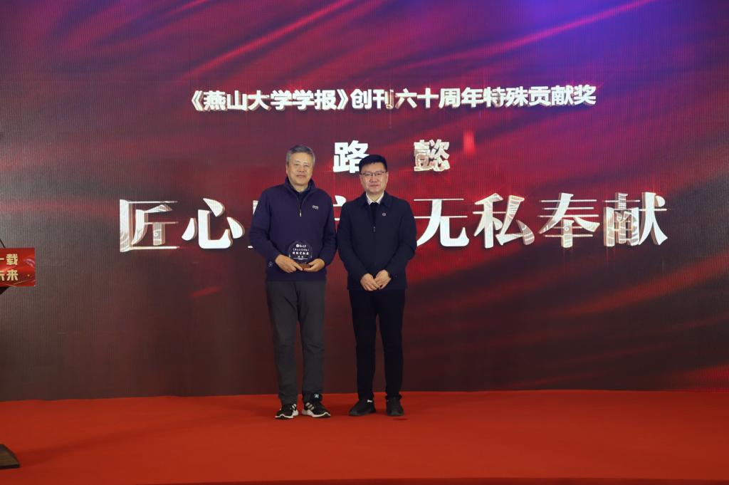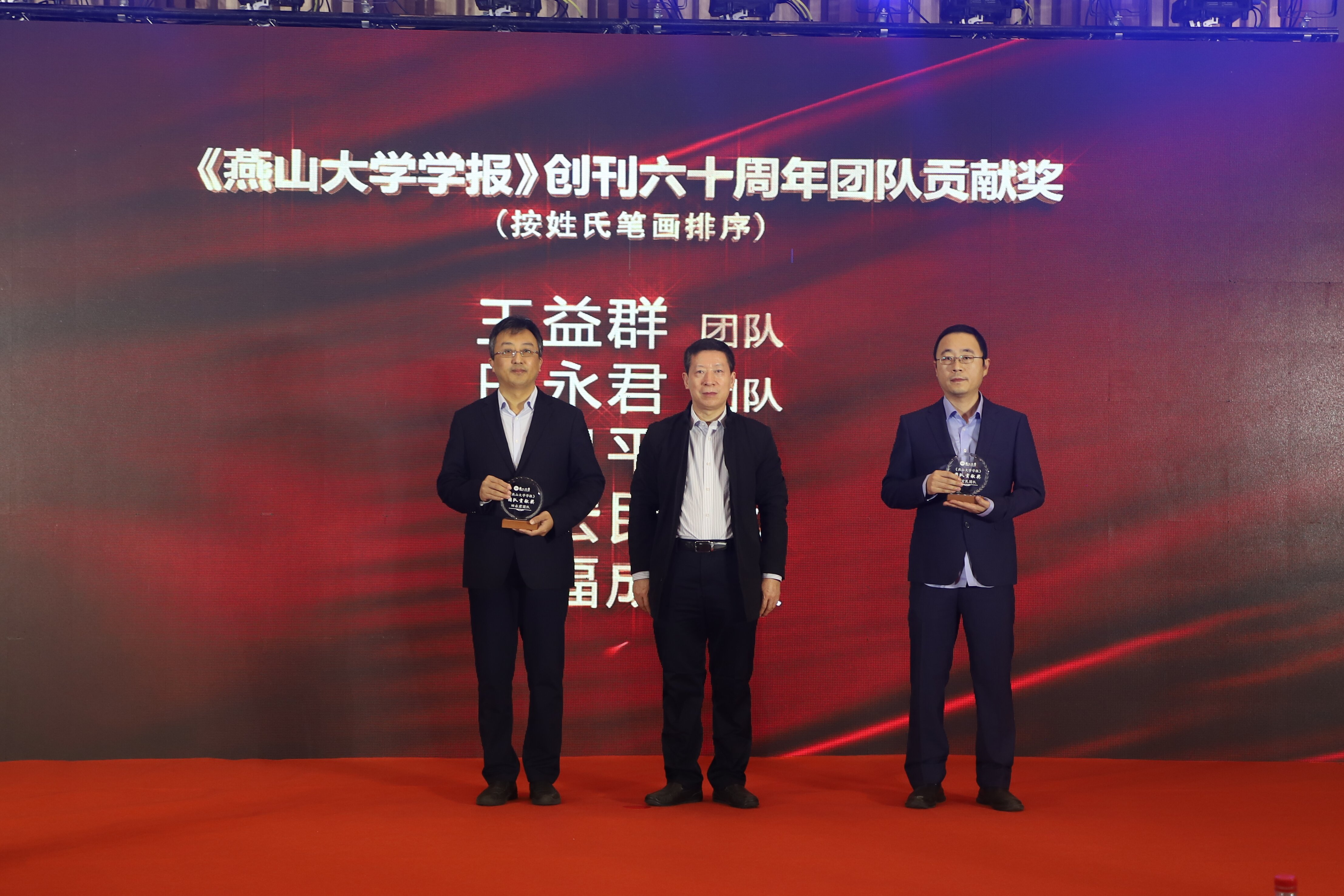 会上发布了《燕山大学学报》创刊六十周年“十佳论文”“优秀审稿人”“团队贡献奖”“特殊贡献奖”“突出贡献奖”等奖项名单。参会校领导为获奖人代表颁发奖杯。