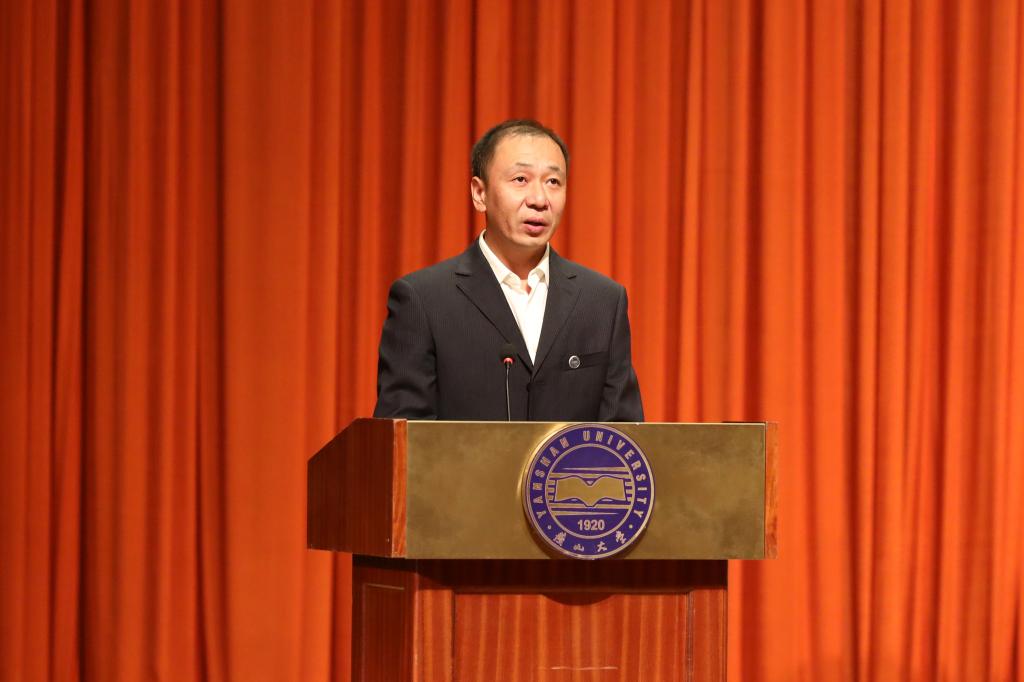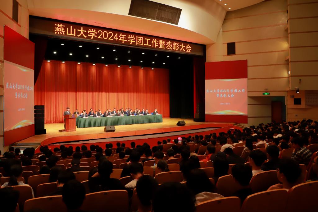 党委书记赵险峰在会上讲话。他表示,全校学团战线师生干部深入学习贯彻习近平新时代中国特色社会主义思想,认真落实立德树人根本任务,秉承革命先烈之志、勇担民族复兴之责,紧扣学校“内涵式高质量发展”主线,持续深化拓展“多向锻造式”大思政育人格局,坚持“五育并举”全面发展,为学校“双一流”建设和内涵式高质量发展贡献了重要力量。他指出,燕山大学波澜壮阔的办学历程始终与国家民族同呼吸共命运,与时代大潮同步伐共奋进,在艰难环境中日益发展壮大。燕山大学的建校史、创业史、发展史是一部融合了红色基因和强国梦想的奋斗史。在燕山大学第四次创业的新百年新征程上,全体燕大人更要踔厉奋发、勇毅前行,为推动学校内涵式高质量发展,谱写中国式现代化建设河北篇章,实现中国特色社会主义教育强国建设目标,做出燕大人的贡献。赵险峰向全校师生提出三点要求:一是以高质量党建为引领,落实立德树人根本任务,塑造投身教育强国之魂。要始终坚持党对高校的全面领导,全面加强理想信念教育,积极推进党建与思政教育协同育人;二是以“三全育人”为支撑,汇聚育人系统合力,夯实投身教育强国之基。要深化“多向锻造式”大思政育人格局,优化“多维矩阵式”辅导员队伍建设体系,打造“多域联动式”学生党建思政新业态;三是以矢志奉献为目标,锚定为党育人为国育才,厚植投身教育强国之本。广大师生要厚植家国情怀,练就过硬本领,积极投身实践。他强调,学校党委将始终如一地重视和支持学团工作,为全体师生的成长奋斗营造良好的环境氛围、提供坚强的组织保障,助力大家在燕山大学成长历练,学有所成、业有所得,以最好的青春、最美的奋斗,接好新一代燕大人的接力棒。他希望,全体学团工作者和青年大学生朋友们能够珍惜时光,勤奋学习,笃信实干,勇于实践,坚定不移听党话、跟党走,怀抱梦想又脚踏实地,敢想敢为又善作善成,立志做有理想、敢担当、能吃苦、肯奋斗的新时代好青年,让青春在服务中国式现代化建设的火热实践中绽放绚丽之花。
