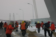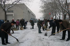 雪刚停,干部职工冒着严寒,顶着冽风,对燕宏桥、求学路、家属区各路段等学校主要交通要道上的积雪进行了清理。清雪现场,一片繁忙的劳动景象,经过三个多小时的劳动,积雪被清理的干干净净,确保了道路的畅通和师生的出行安全。(编辑 艾冬梅)