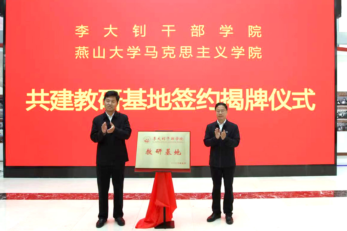 赵险峰与张振峰共同为李大钊干部学院教研基地、燕山大学马克思主义学院实践基地揭牌