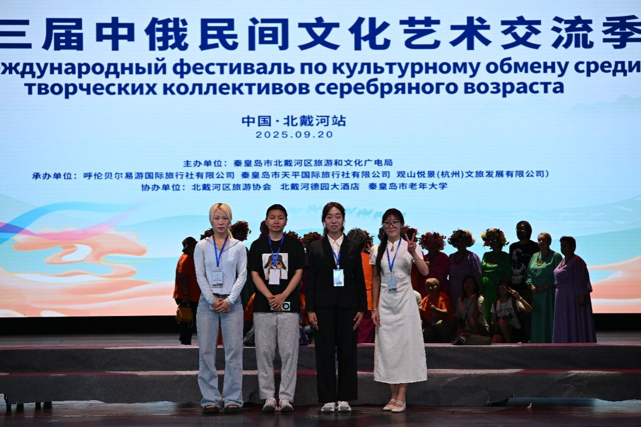 【新闻中心讯】9月20日,第三届“万里茶道 银发艺彩”中俄民间文化艺术交流季活动(中国・北戴河站)于北戴河区劳动人民文化宫成功举办。此次活动由秦皇岛市北戴河区旅游和文化广电局主办,呼伦贝尔易游国际旅行社有限公司、秦皇岛市天平国际旅行社有限公司等单位承办,吸引了中俄两国百余名银发艺术代表踊跃参与。