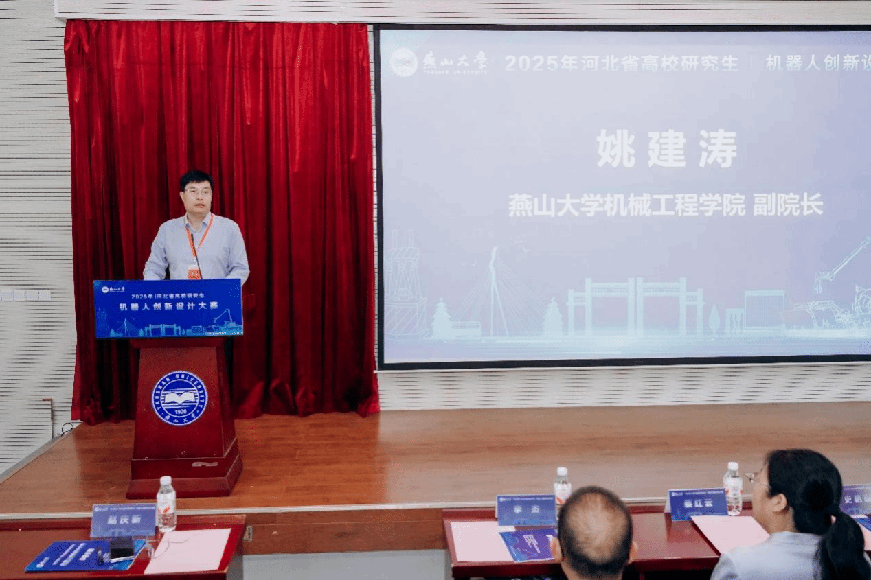 燕山大学党委常委、副校长,河北省工学研究生教育指导委员会主任委员汪殿龙教授出席开幕式并致辞。他在致辞中表示,机器人技术是智能制造业皇冠顶端的明珠,是推动新质生产力发展的关键驱动力。举办面向研究生的机器人创新设计大赛,是为我省高层次创新人才搭建激发灵感、展示才华的广阔舞台,更是服务河北省乃至国家经济社会高质量发展的重要举措。