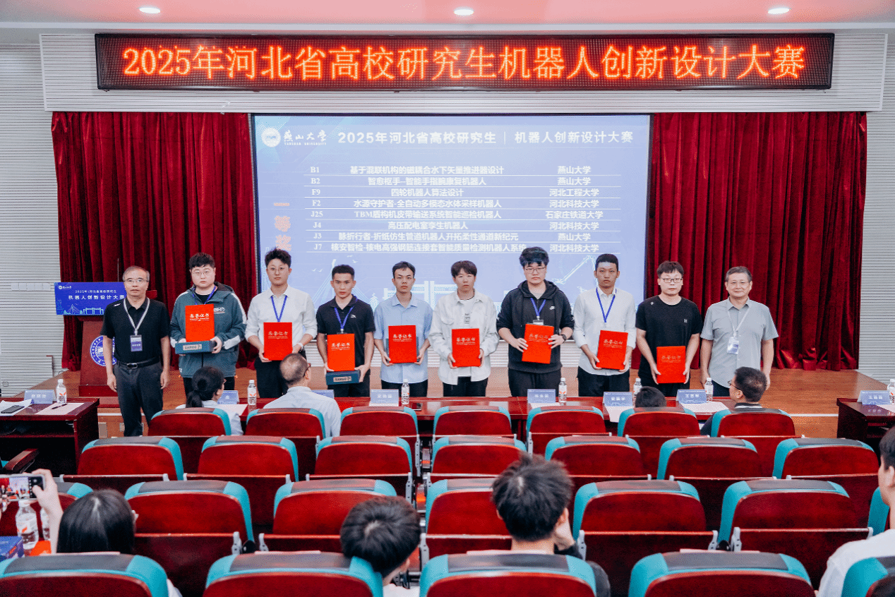 闭幕式暨颁奖典礼由燕山大学研究生院副院长赵延治主持。本届大赛是我省机器人领域高层次人才培养成果的一次集中检阅,也是一场充满创新激情与青春智慧的科技盛宴。比赛中,各参赛团队展现出了扎实的理论功底、卓越的创新能力和顽强的拼搏精神,充分体现了我省研究生在机器人领域的创新活力与实践水平。
