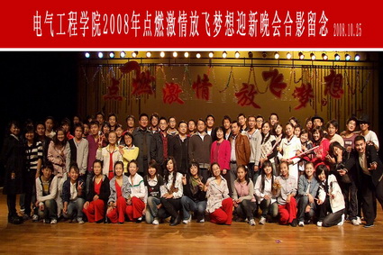 【新闻中心讯】10月25日晚,电气工程学院在东校区大学生活动中心举办了2008年“点燃激情,放飞梦想”迎新晚会。晚会由电气工程学院团委主办,希望艺术团承办。校团委书记蔡大勇、副书记孙红磊,电气工程学院院长关新平、副院长侯培国、金海龙,党委副书记、副院长严冰,学院部分老师以及08级新生观看了晚会。