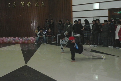 舞会以秦皇岛市街舞大赛冠军组合的炫舞开场,他们以流畅、舒展、欢快的动作表达着属于这个时代的个性。动作即语言,语言即心声。紧接着,两位舞蹈老师伴着热情奔放却暗含内敛悠远的音乐跳起了拉丁舞,将这场舞会推向了高潮。随后,同学们两两结合,伴着“one two 恰恰恰”的节奏,跟着老师学起了恰恰舞。之后,两位老师教大家跳交谊舞。或许前面的舞蹈充满的是现代信息,使得傣族的竹竿舞显得格外特别。越来越快的竹竿击打。华燕之声最佳人气奖得主胡远为大家演唱了《青花瓷》。 经济管理学院的吴龙飞为大家表演了中国功夫,一招一式充满阳刚之气,赢得了大家的喝彩。舞会在同学们自由跳舞中悄然结束。