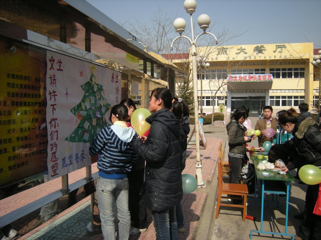 3月7日上午8:30,机械工程学院学生会文艺部的同学们就开始忙碌了,他们正在为全校的女生们准备一个属于她们自己的节日——女生节。 “本届‘女生节’以‘Her时代’为主题”,该学院活动相关负责人介绍说,“目的是反映当代女大学生最真实的生活情况,同时让每位女生都能感受到大家对她们的关心,使她们的生活更加积极健康。” 机械工程学院女生节由三个活动组成。3月7日至13日,在四舍门口举行“女生节”图片展,直接反映女大学生的精神风貌和生活状态;3月7日中午,组织女生抽奖,礼物大派送,并由她们在卡片背面写下自己的心愿,并亲手系在许愿树上;3月12日晚7:30,在机械馆邀请就业发展协会的老师为机械工程学院所有的女生举办就业礼仪知识讲座。 上午10:30,准备工作就绪,图片展活动和礼物大派送活动先后开始。到中午12:00时,已经有非常多的女生融入了她们自己的节日中。她们听着动听的歌,看着那一张张照片不禁笑了起来;她们高高兴兴,热热闹闹地参加抽奖礼物大派送活动;她们认认真真地在卡片上写着自己的心愿,并虔诚地系在许愿树上……活动现场充满了一种温馨、欢畅的气氛。 下午1:30礼物大派送活动在喜庆欢乐中结束。参加活动的一位女生说:“今天我玩的非常高兴,非常开心!希望学校每年都能举办这样的女生节!”