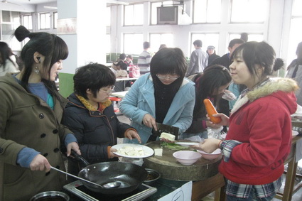 3月7日下午1:30,文法学院团委主办的女生节系列活动之“厨艺大赛”在东校区第一食堂一楼举行。 比赛持续了两个多小时,40多支参赛队各显身手,各队队员之间配合默契,一道道佳肴陆续展现在评委与观众面前。最终07级政治学2班的土豆队以色香味俱全的“四季飘香”夺得了厨神称号,“美味童话”等10个团队分别夺得一二三等奖,最佳创意奖,最佳厨艺奖,最佳团队奖,最佳特色风味奖等奖项。 本次活动充分展示了文法学院女生的厨艺,培养了学生的团队合作精神及动手能力,激发学生的想象力,展示了当代大学生的青春风采。