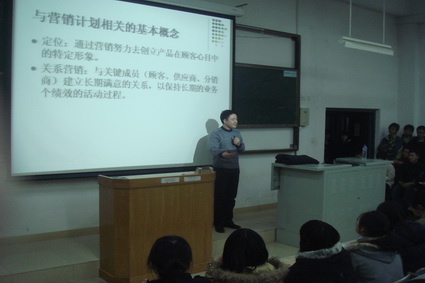 在座无虚席的教室内,逯老师开始了他风趣幽默的演讲。他首先从最根本的说起,向同学们讲解了市场营销的几个基本概念。其中包括“需要”、“欲望”、“需求”、“价值”、“市场细分”、“定位”和“关系营销”。每一个概念都包含了很多营销策略。逯宝峰老师强调说,“我们要站在消费者的角度来思考,那样才能更好的抓住时机,赢得比赛”。随后,他介绍了“影响消费者购买因素”和“消费者购买行为中决策的制定群体”两个影响营销的关键问题。每个问题都关系到营销的胜败。在讲解过程中,他运用许多自己的经验和经典营销故事,让同学们在欢笑中掌握了知识。针对营销计划的写法,他分为引言、依据和计划的实施进行了详细的介绍。同时,他着重强调了“细节”所能带来的意外收获。最后,他对大家说,是成是败,都有其可取之处,一定要认真对待。持续热烈的掌声送给了逯宝峰老师。(编辑 朱可嘉)