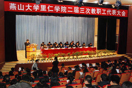 【新闻中心讯】3月14日里仁学院召开二届三次教职工暨会员代表大会。燕山大学副校长兼里仁学院院长孔令富作工作报告。
