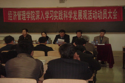 【新闻中心讯】3月19日下午4:40,经济管理学院深入学习实践科学发展观活动动员大会在四教403室召开。出席会议的领导有副校长孔令富,经济管理学院学习实践科学发展观活动领导小组成员。各教职工党员、学生党支部书记、民主党派和无党派代表等出席会议。