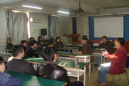 会议首先由院长董洪学做了学院工作报告。董院长首先就教学工作、科研工作、行政和财务工作三个方面回顾了学院2008年的工作情况。指出2008年学院工作取得了许多进展和突破,但是2009年我们面临更多的挑战和机遇。学院要在学风和教风建设、深化大学英语改革、学科建设和科研工作、学生工作和工会工作等方面取得更大的进步。随后,工会主席董立峰做了详尽的工会工作报告。