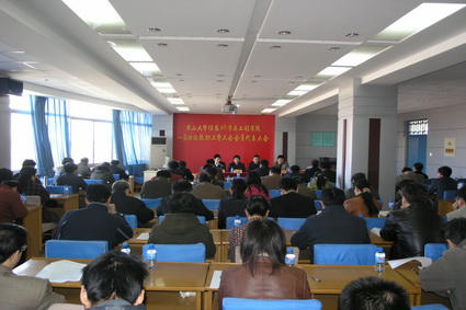 上午9点,大会在庄严的国歌声中隆重开幕。副校长刘彬首先代表学校领导向大会致词。随后信息学院院长毕卫红代表学院向大会做了题为《科学规划、开拓创新、铸就特色,建一流强院》的学院工作报告。报告全面总结了学院2008年的各项工作,深入分析了学院目前存在的问题,提出了学院2009年的工作目标和实施纲要。报告思想明确,总结全面,分析客观,引起了与会代表的强烈共鸣。