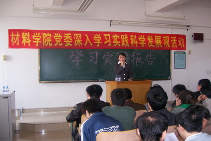 【新闻中心讯】按照《中共燕山大学材料科学与工程学院委员会关于开展深入学习实践科学发展观活动实施方案》的工作计划,3月26日下午15:00,材料科学与工程学院党委在西(二)308举行深入学习实践科学发展观活动专题报告会。邀请秦皇岛市党校副校长、市社科联副主席刘家才同志做了专题报告。材料学院学习实践活动领导小组组长王丽萍书记主持报告会。材料学院党委所属的国家重点实验室、国防学院和材料学院全体教工党员、学生党员参加了报告会。