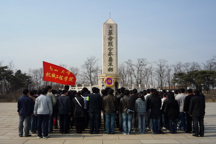【新闻中心讯】为了深入学习实践科学发展观,对学生党员进行爱国主义教育,2009年4月2日在清明节到来之际,机械工程学院党委组织100多名学生党员到山海关烈士陵园祭扫烈士墓。 在寒风的风中,大家排着整齐的队伍来到烈士墓碑前,学生党员代表向烈士纪念碑敬献了花圈;大家默哀三分钟,怀着无比敬仰的心情,缅怀革命先烈的丰功伟绩,寄托对革命先烈的无限哀思;然后党员们一起重温了入党誓词,瞻仰烈士纪念碑,并向烈士墓敬献鲜花。
