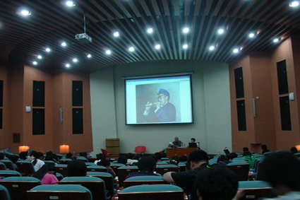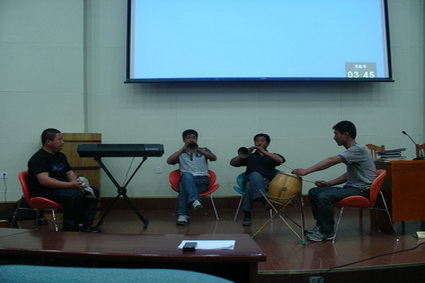 这次讲座的题目为《抚宁鼓吹乐》。郑先生首先从抚宁民间文化和民俗民风谈起,接着介绍了抚宁民间乐器的分类,重点讲解了抚宁唢呐的规制特点及演奏风格。讲座期间,来自抚宁的四位鼓吹乐手现场演奏了《百鸟朝凤》等经典唢呐曲,使大家对抚宁鼓吹乐有了更为直接的感受。郑先生诙谐幽默的讲解和乐手精彩的表演赢得师生的阵阵喝彩与掌声。