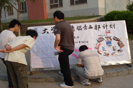 毕业班辅导员通过多渠道进行政策解读,向尚未就业的毕业生介绍了国家、学校关于志愿服务西部的鼓励政策,并激励毕业生以满腔热情投身西部建设,为自己的青春增添光彩;各班级团支部、学生党支部也纷纷利用宣传板,通过图片形式生动介绍了西部的风土人情,并通过座谈会等形式讨论了人才强国和西部大开发战略的重要意义。