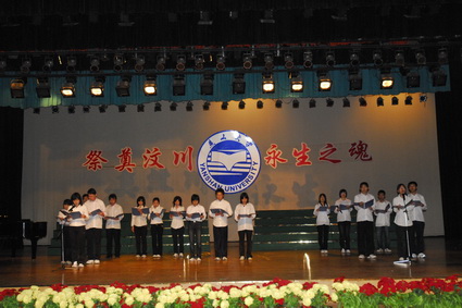 【新闻中心讯】 5月10日晚7:00,由机械工程学院主办的“祭奠汶川,永生之魂”大型诗歌朗诵会在东校区大学生活动中心举行,在汶川大地震一周年即将来临之际,他们用独特的方式对地震受灾民众的致敬和对遇难同胞的致哀。