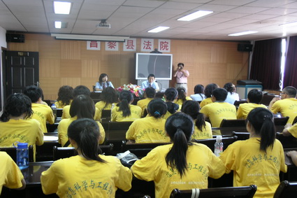 由于大学生的社会经验匮乏,在就业时,初入社会难免遇到自己的权益被侵害的事实,为了加强同学们在就业中的法律保护意识,防止上当受骗,保护自己的合法权益,6月5日下午2:00,燕山大学信息科学与工程学院学生党员代表,一行来到秦皇岛市昌黎县人民法院,进行了主题为“践行科学发展 加强法制教育 提高就业中的法制意识”的实地参观学习活动。此次学习活动,受到了昌黎县人民法院的重视,并给予了极大地帮助。出席此次参观学习活动的有,昌黎县人民法院民一审判庭庭长李莉炜,副庭长胡奇峰,审判员赵瑞利、蒋红梅,书记员高翔、刘明。首先,民事庭的李莉炜庭长讲解了我们学法用法的重要性,随后,胡奇峰副庭长针对《劳动合同法》就劳动合同的适用范围,如何签定劳动合同,签订的注意事项等为题进行了详细的讲解。同时,针对试用期的薪金问题,劳动合同的解除等问题,结合具体案例,生动形象的为同学们进行了详细的分析讲解,使同学们在案例中理解领悟法条。其次,胡奇峰副庭长还为大家讲解了申请劳动权利保护的具体程序,让同学们对此有基本的了解。最后,针对讲解的内容,同学们还积极进行了提问,法院的各位同志十分热心的给予了解答。下午4时,讲座在热烈的掌声中结束。最后,李莉炜庭长带领同学们参观了昌黎县人民法院。